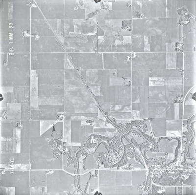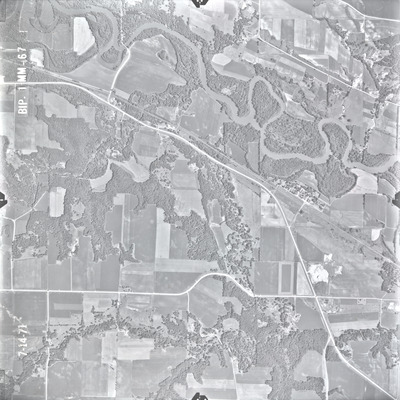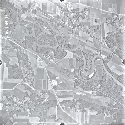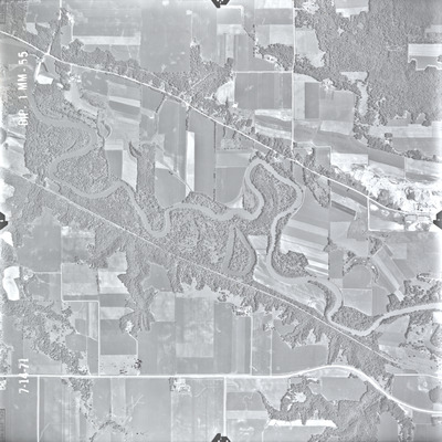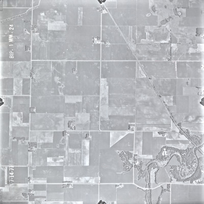The Blue Earth County (BIP) air photos were flown on July 14, 1971. These photos are a scale of 1:20000. The flight lines follow an east-west direction.