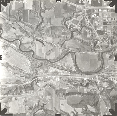 mndot, air photos, aerial photography, 1990, le hillier, north mankato, blue earth river, minnesota river, pond, stream, marsh, railroad, field tiling, tank farms, golf course, minneopa cemetery, wetland