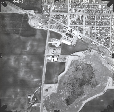 mndot, air photos, aerial photography, 1991, hanska, pond, stream, marsh, field tiling, grain elevator, mount pisgah cemetery, wetland