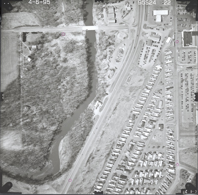 Aerial survey project no. 95S-24 was flown on April 6, 1995. These photos are a verbal scale of 1"=250'. The flight lines provide coverage for highway 15 and New Ulm.